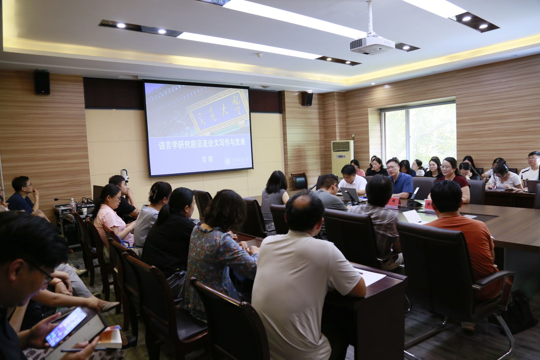 6月20日下午,上海交通大学常辉教授应邀做客性巴克 ,在5231会议室作“语言学研究前沿及论文写作与发表”专题讲座。讲座由院长黄辉辉教授主持,学院班子成员、学科骨干、青年教师及研究生共同聆听。