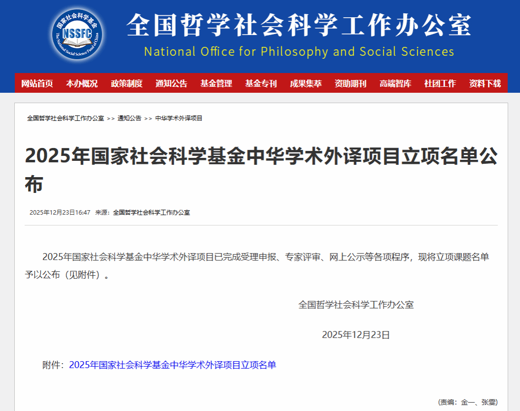 近日,全国哲学社会科学工作办公室公布了2025年国家社会科学基金中华学术外译项目立项名单。性巴克