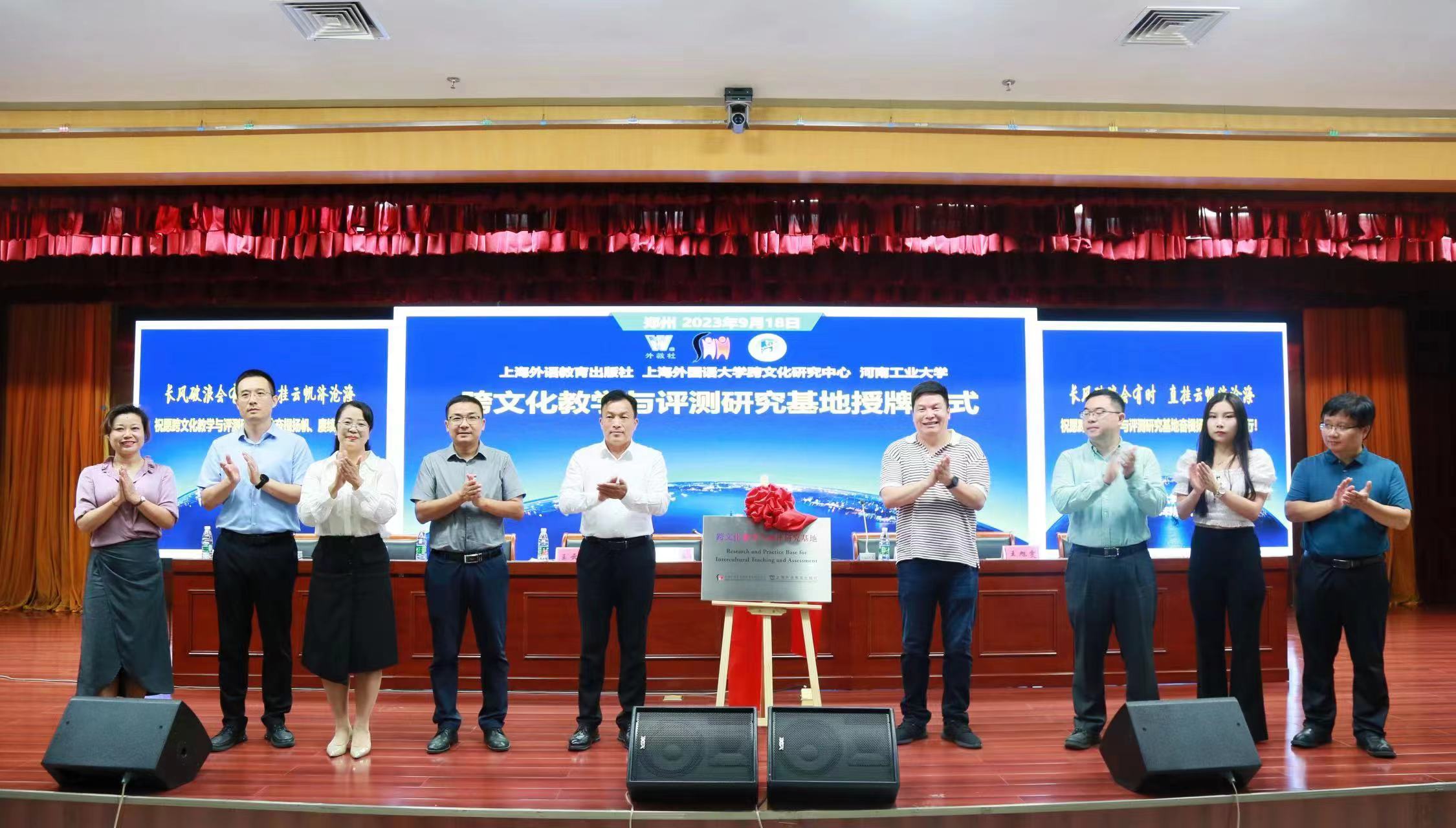 与上海外国语大学跨文化研究中心、上海外语教育出版社合作共建的跨文化能力研究与测评基地揭牌仪式在D303报告厅举行,性巴克
