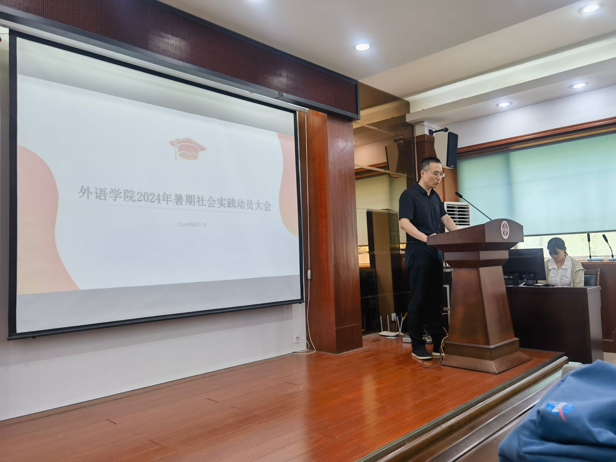 最后,院党委副书记李建锋作总结动员讲话。他代表学院党委对2023年度社会实践取得的成果给予了充分肯定,并对今年参与社会实践的同学们提出四点希望:一是响应习近平总书记号召,“每一个青年都应该成为社会主义建设者和接班人”。要敢于担当时代责任、勇于砥砺奋斗、练就过硬本领、锤炼品德修为,争做有理想、敢担当、能吃苦、肯奋斗的新时代好青年。二是抓住暑期社会实践的宝贵机会,积极投身到社会大熔炉中提升自我、开阔眼界、增长见识。融入社会大课堂,在社会实践中学会待人接物基本礼仪,切实提升社交能力和团队协作能力。三是人身及财产安全永远要放在第一位。暑期全国各地旱涝灾害多发易发,做好安全防范,灵活调整实践地点和出行时间,乘坐合法营运车辆,时刻注意保护生命财产安全,防范电信网络诈骗,牢固树立健康的意识形态观和大局观。四是认真听取指导老师建议,做足前期准备,高质量完成社会实践工作,并祝愿每一位同学都能在实践中满载而归、硕果累累。社会实践是高校人才培养的一个重要环节,参与社会实践有助于引导大学生走出校门、接触社会,了解国情、使理论与实践相结合,增强服务社会的意识,促进大学生全面发展。本次活动的圆满召开,为同学们提供了丰富的理论指导和实践指导,体现了学院对暑期社会实践的高度重视和大力支持。(撰稿:张潇然 吕明环 摄影:张潇然  审核:李建锋  审校:王云涛)