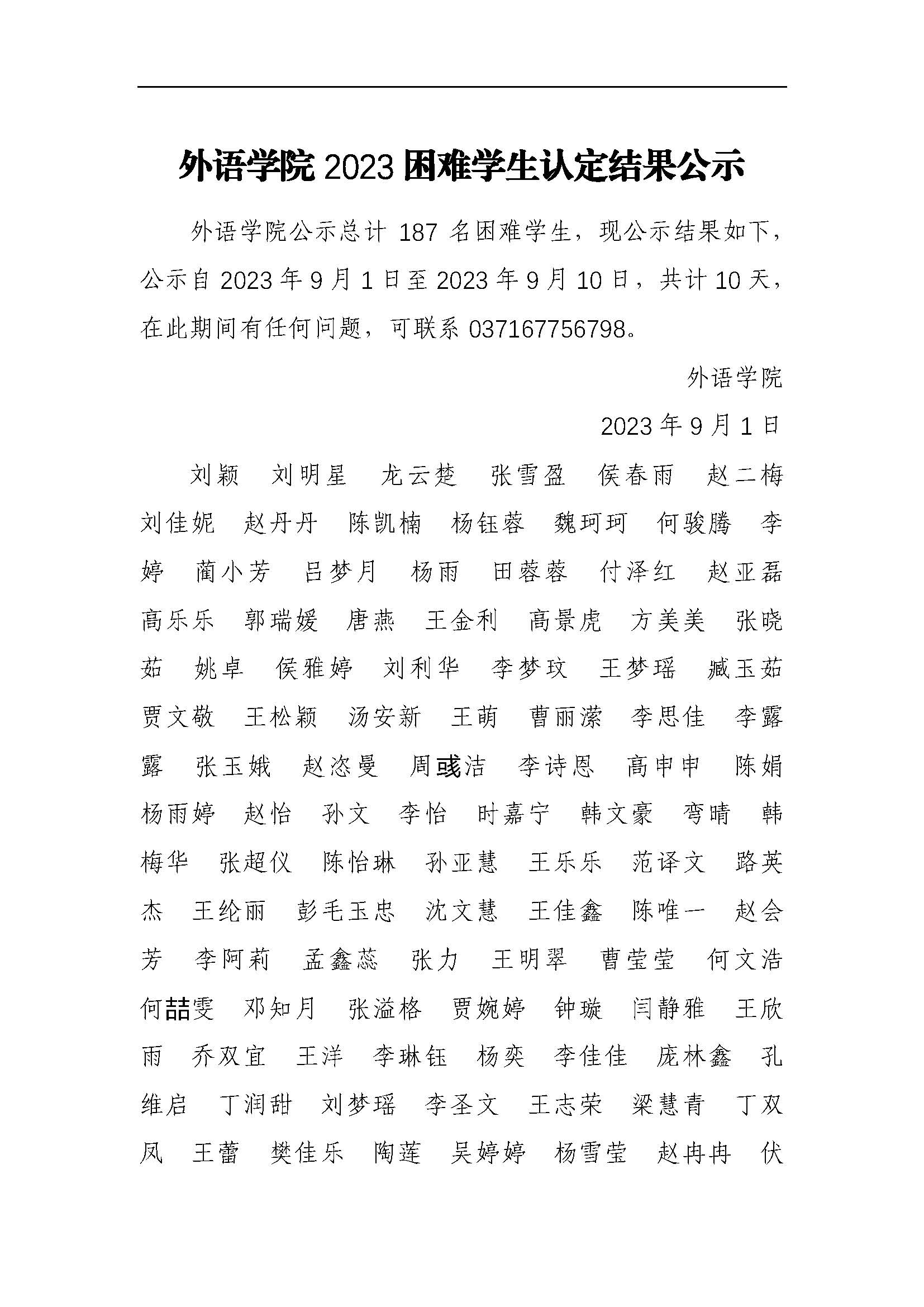 性巴克 2023年家庭经济困难学生认定结果公示