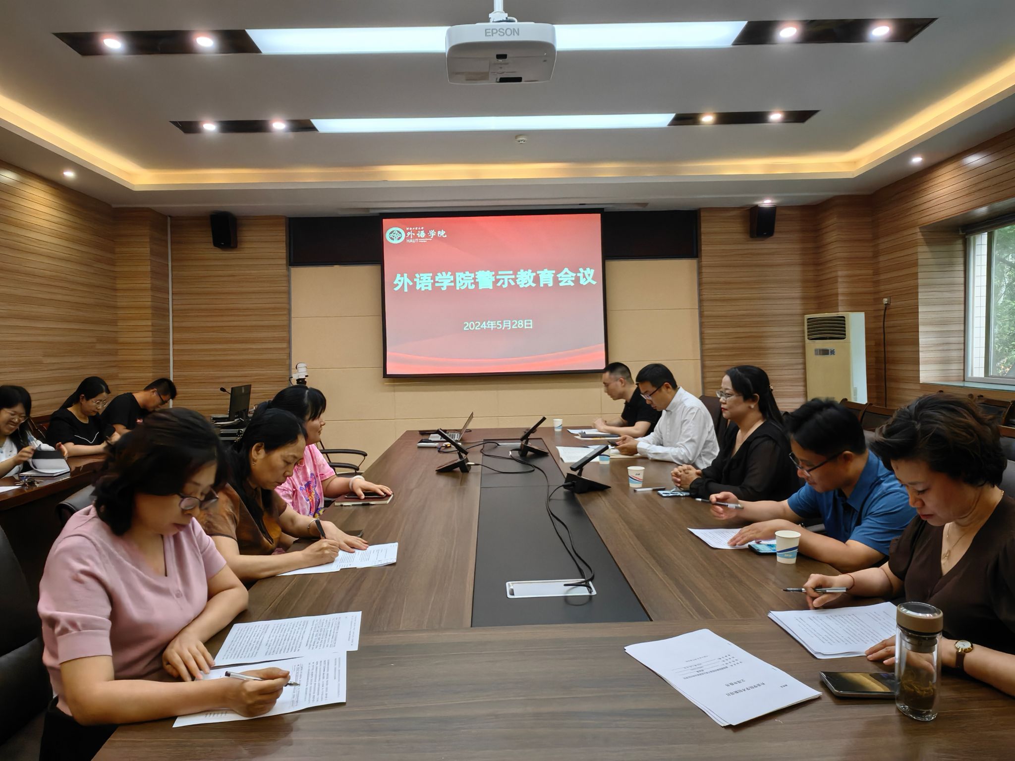 5月28日下午,性巴克 在5231会议室召开党纪学习教育警示教育和党委理论学习中心组集中学习会。学院领导班子、系部主任、党支部书记及各科室负责人参加会议。会议由学院党委副书记李建锋主持。