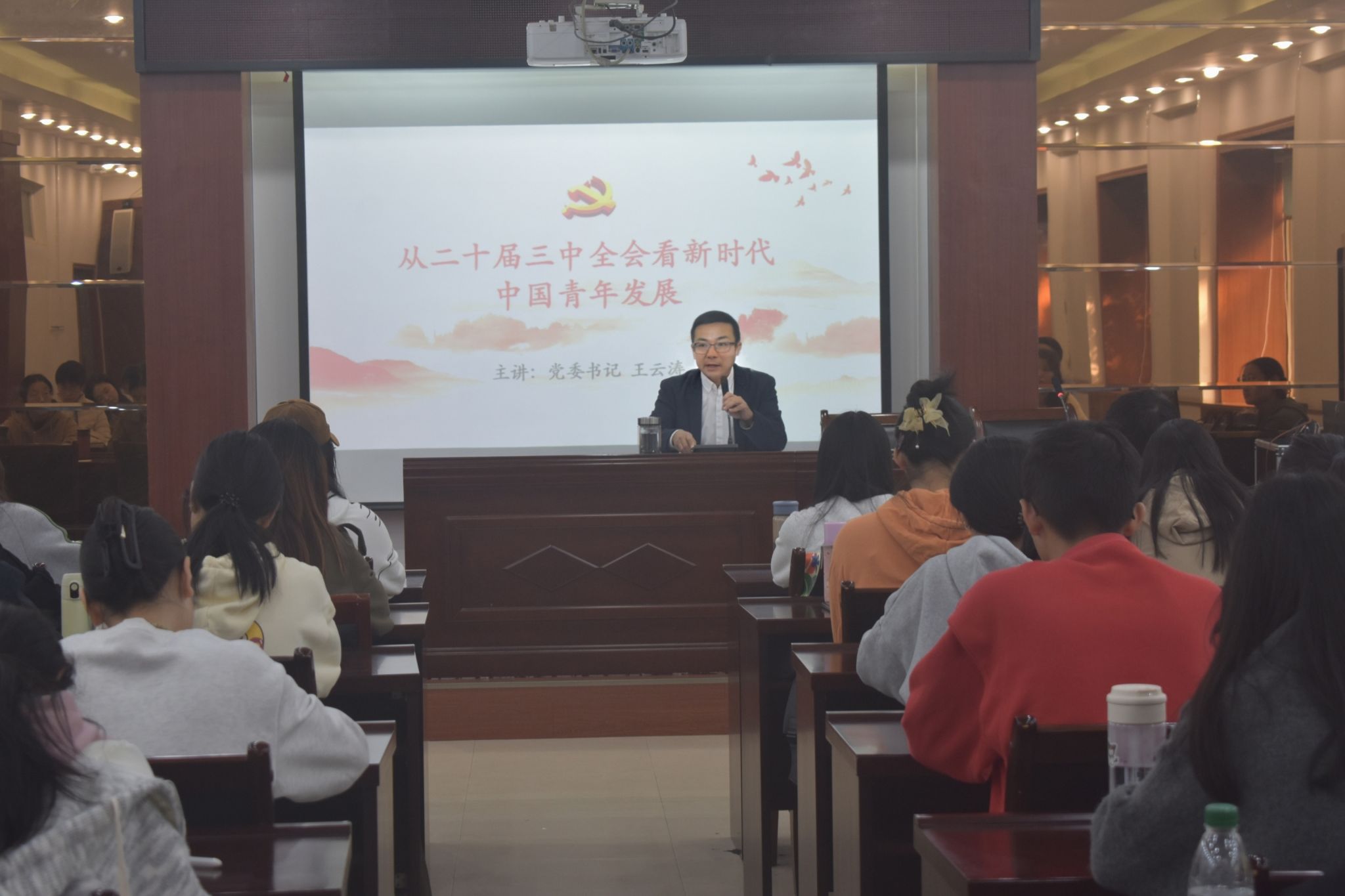 理论教学环节,王云涛为学员们做了题为《从二十届三中全会看新时代中国青年发展》的报告。他从“习近平总书记心中的新时代好青年是什么”和“青年大学生如何成长为堪当民族复兴重任的时代新人”这两个问题出发,围绕党中央对青年工作空前重视、寄予厚望,新时代青年付诸强国实践勇挑大梁、争当主角,团学干部锻造素质能力、引领强国建设等三个方面进行了辅导。他鼓励团学骨干要牢记宗旨使命,紧跟时代步伐,争做有理想、敢担当、能吃苦、肯奋斗的新时代好青年;要珍惜在校时光,勇于开拓创新,以扎实的工作和丰富的实践助力广大同学成长成才成功,在思政引领、科技创新、社会服务、乡村振兴等方面发挥先锋模范作用,在以中国式现代化全面推进强国建设、民族复兴中贡献更多青春力量。