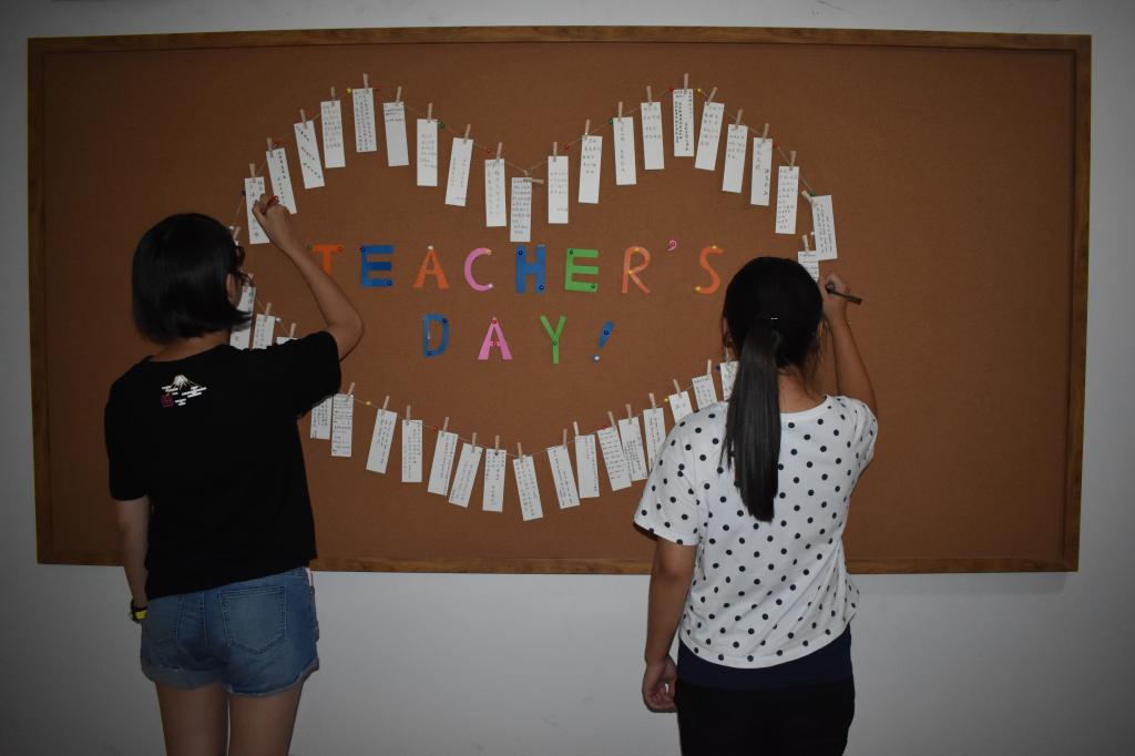 本次教师节主题系列活动由四个环节组成:课前行谢师礼、为老师们清扫办公室、DIY感恩贺卡、新媒体宣传送祝福。上课之前,性巴克