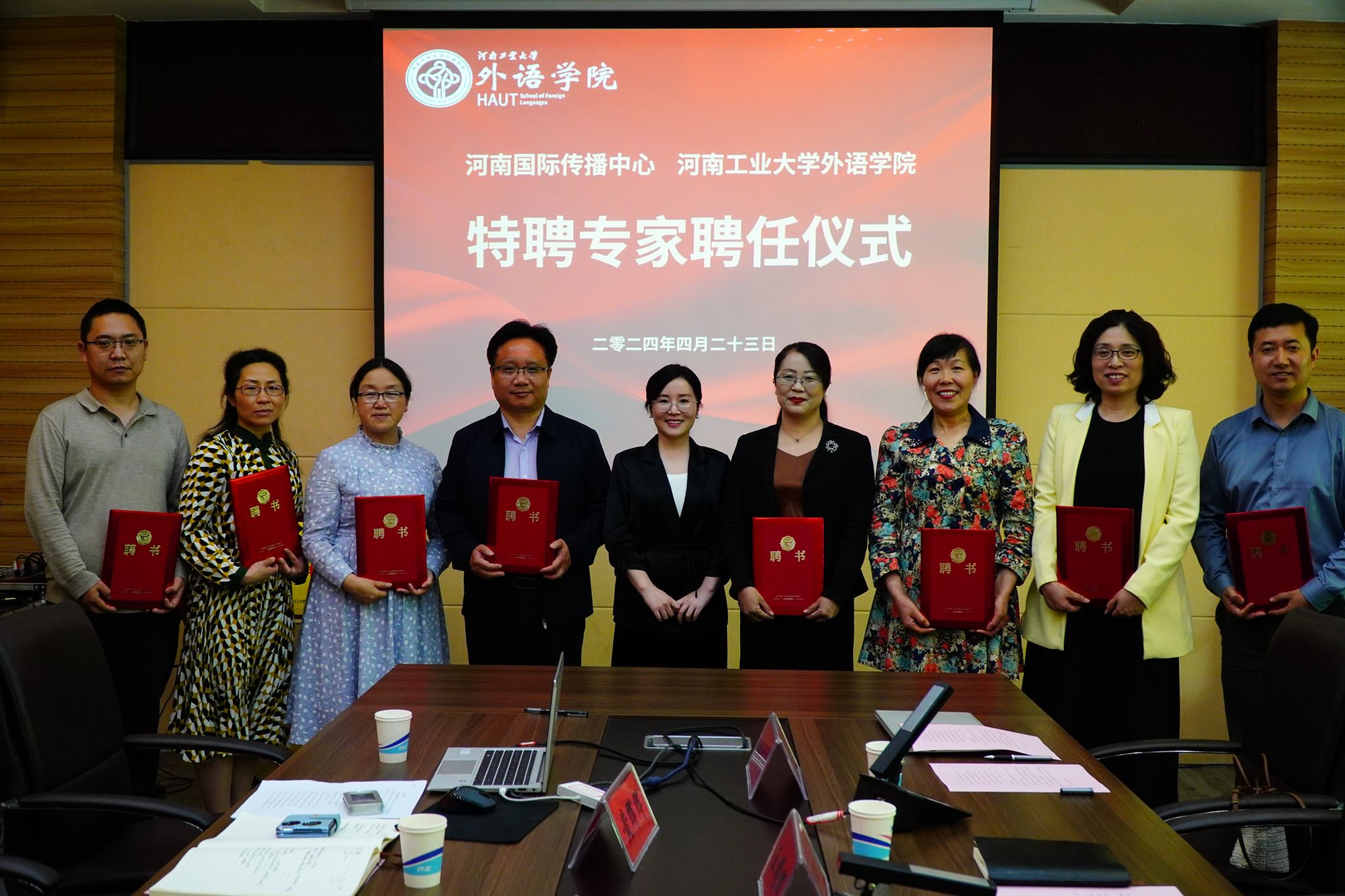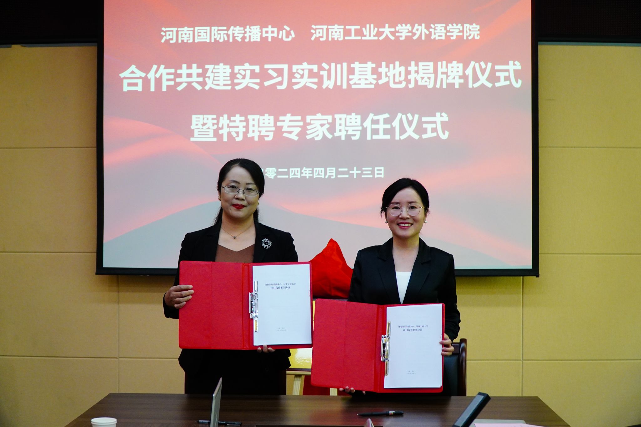 英语、西班牙语、日语语种共17位老师受聘为河南国际传播中心专家团成员。双方共同签署了合作框架协议。同时,双方合作共建实习实训基地正式揭牌。河南国际传播中心将依托自身平台优势,为性巴克