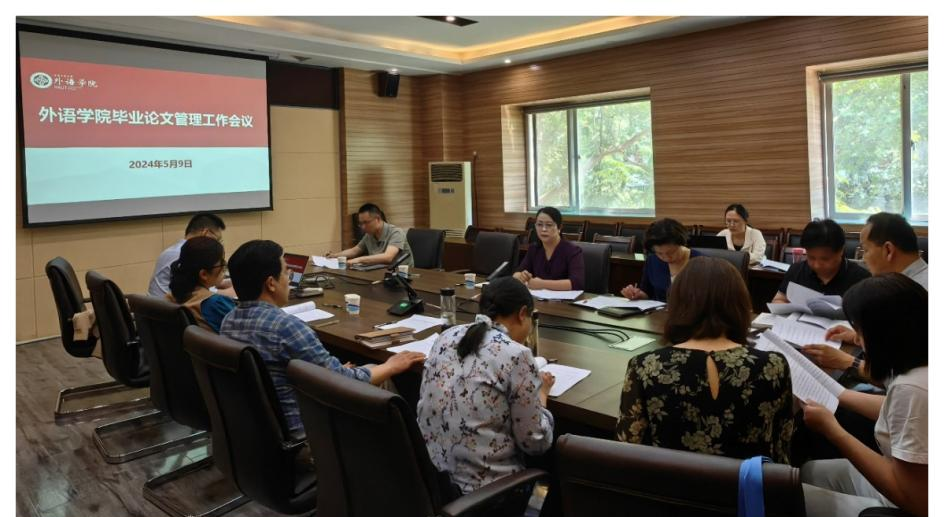 在5231会议室召开本科毕业论文管理工作会议,学院领导班子、学术委员会成员、系部主任、教学办主任以及骨干教师参会,会议由院长黄辉辉主持。