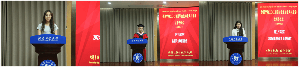 作为教师代表,刘希瑞在发言中向毕业生们提出了三点期望:涵养家国情怀、脚踏实地做事、做一个靠谱的人。他鼓励毕业生们将个人成长与国家发展相结合,用外语讲好中国故事,传播中国声音。刘希瑞强调,务实的态度和靠谱的品质是成功的关键,他希望毕业生们在未来的道路上能够不忘初心,坚持勤奋努力。