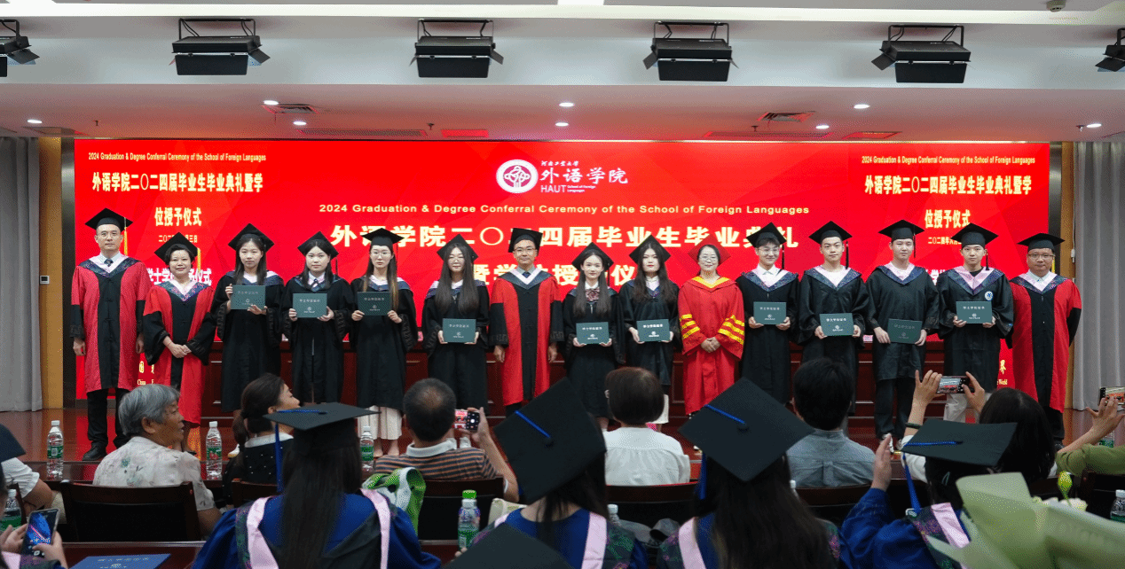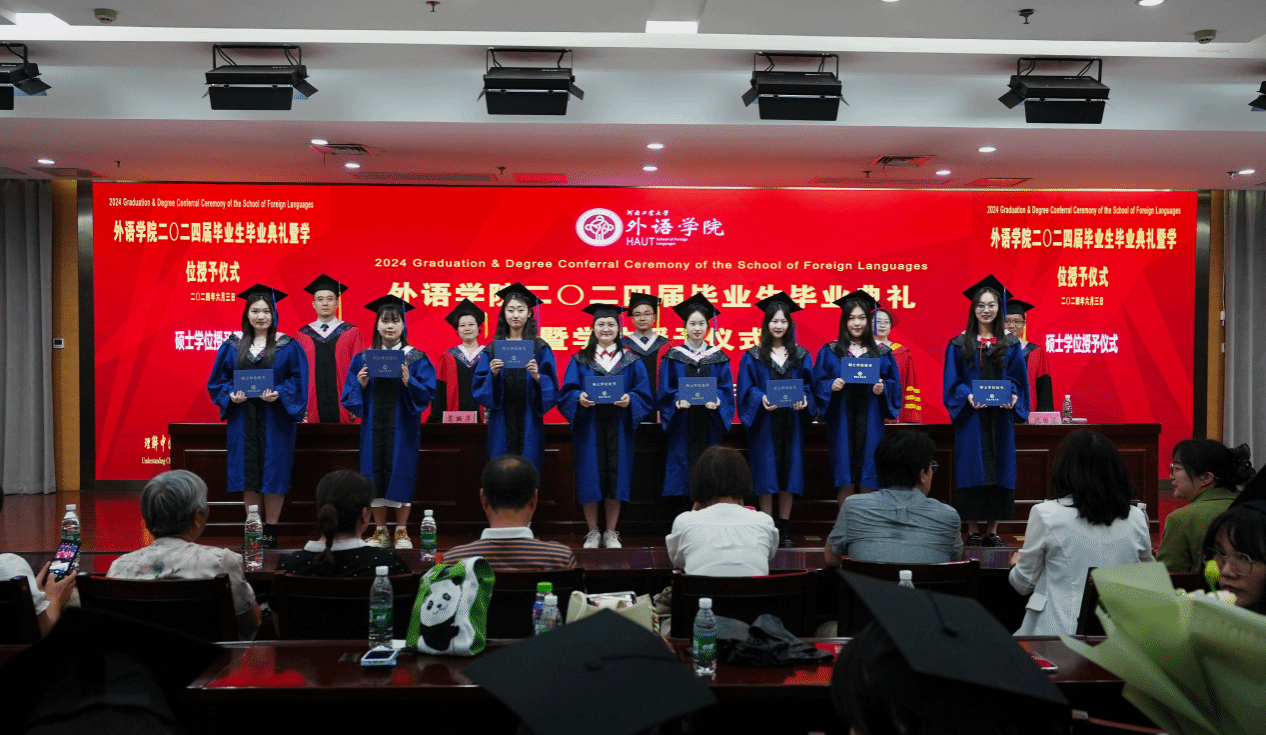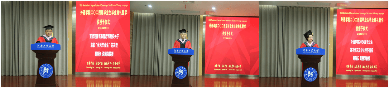 关于表彰“优秀毕业生”的决定。副院长葛丽萍介绍学院2024届毕业生基本情况及学位授予情况。出席典礼的领导和老师为受表彰的优秀毕业生颁发了荣誉证书。