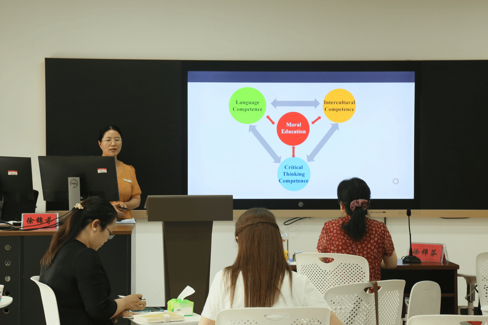 21日下午,徐锦芬教授指导学院教师依据自己的课程进行研究性教学设计,实施有效外语教学。性巴克