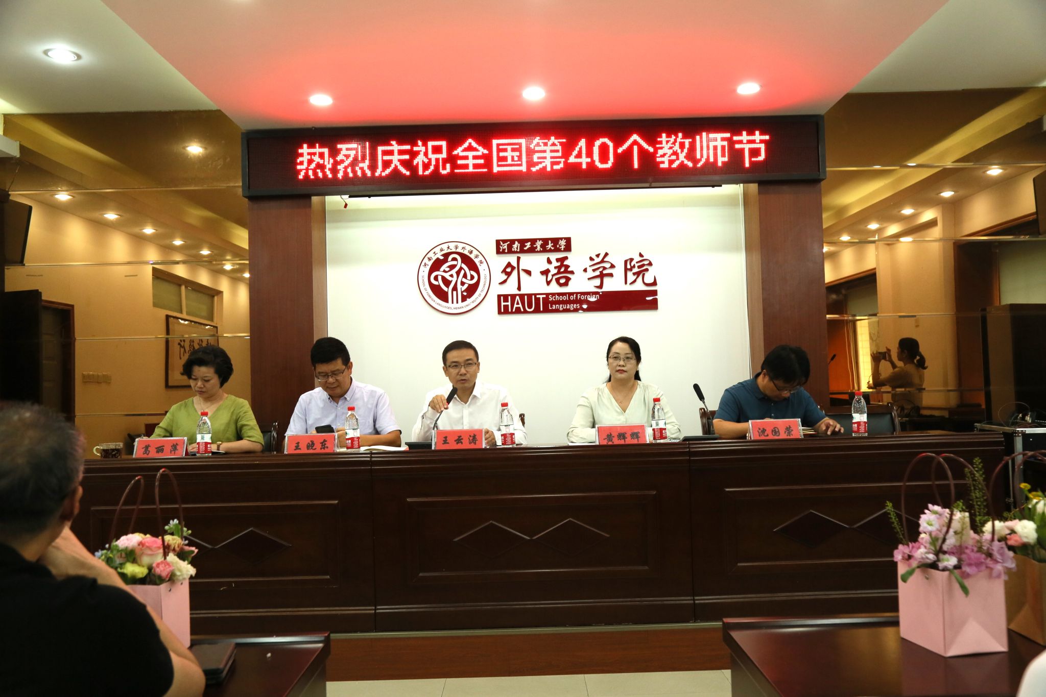 在5225会议室召开秋季学期教职工大会庆祝全国第40个教师节,安排部署新学期工作,学院领导班子、全体教职工参加会议,会议由学院党委书记王云涛主持。