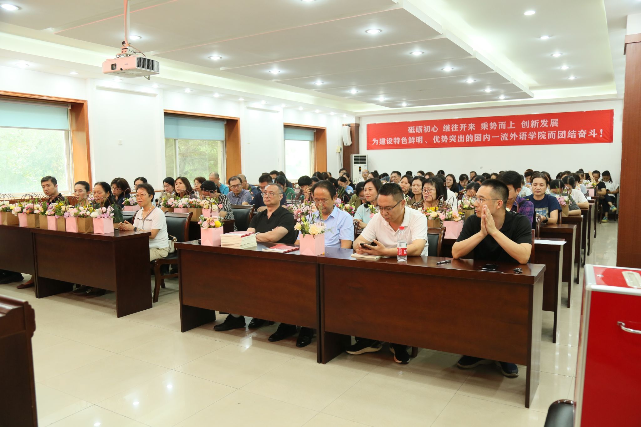 新学期、新征程。本次教职工大会的召开,激励了全院教职工坚守师德师风初心,勇担立德树人的使命,并为学院新学期工作的有序开展明确了目标,指明了方向。全体教职工将以此次会议为契机,团结一心,凝心聚力,致力于促进学院各项事业的蓬勃发展。(撰稿:刘振 摄影:洪霞 审校:王晓东 审核:王云涛 黄辉辉)