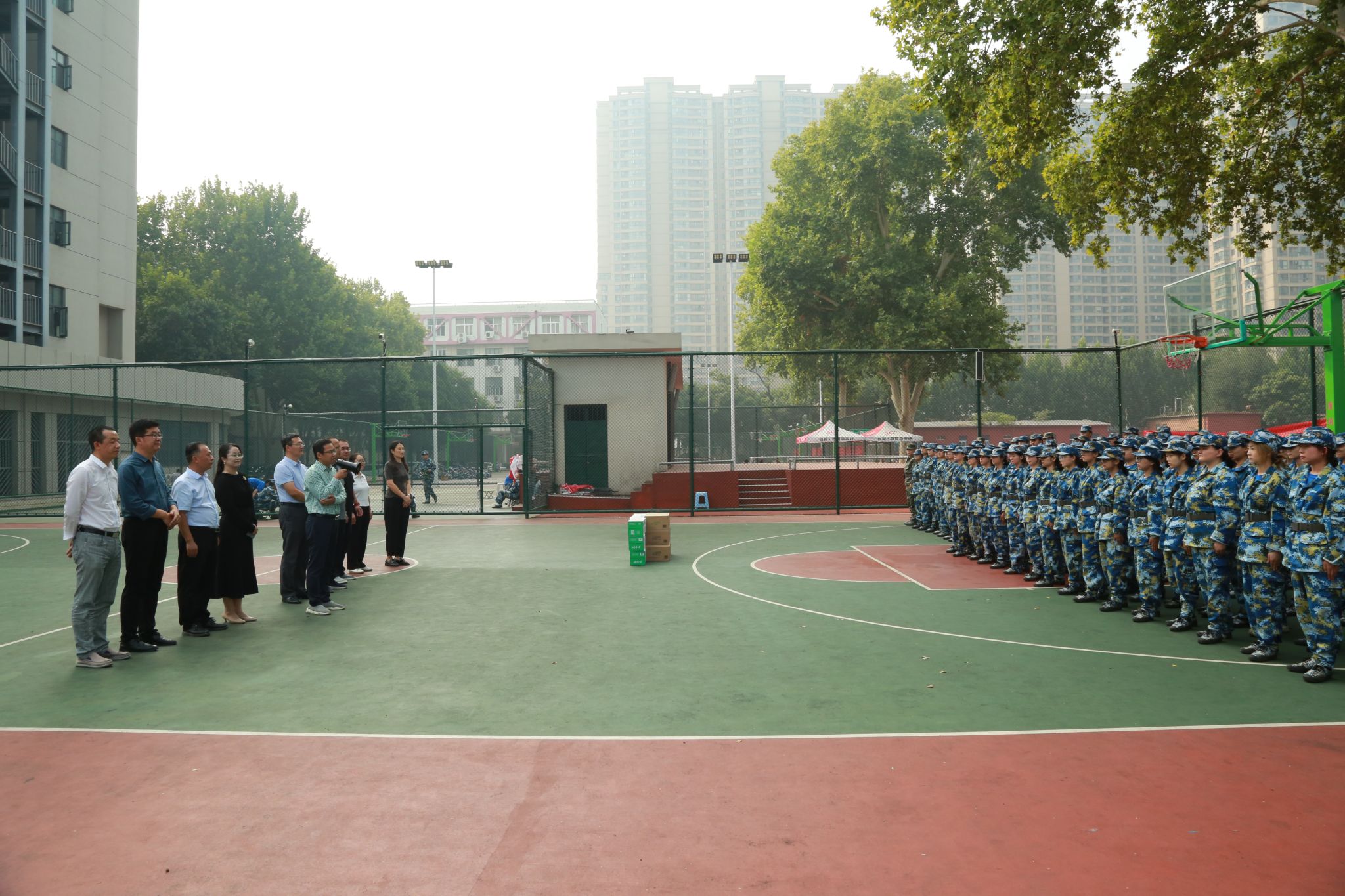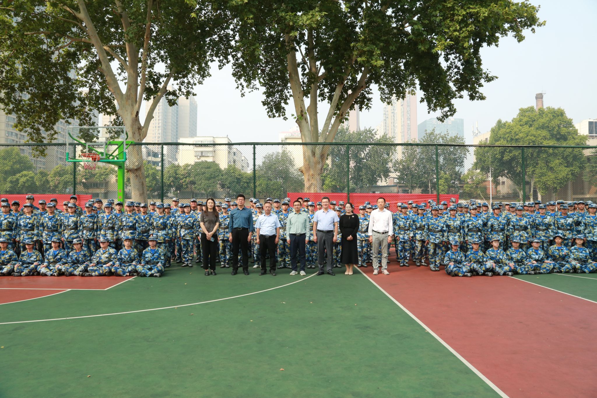 与军训学生合影