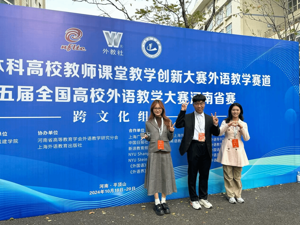 本科生姚冰、新闻与传播学院本科生于佳卉、粮油食品学院本科生张雨涵三名同学组成的跨文化团队荣获河南省一等奖。
