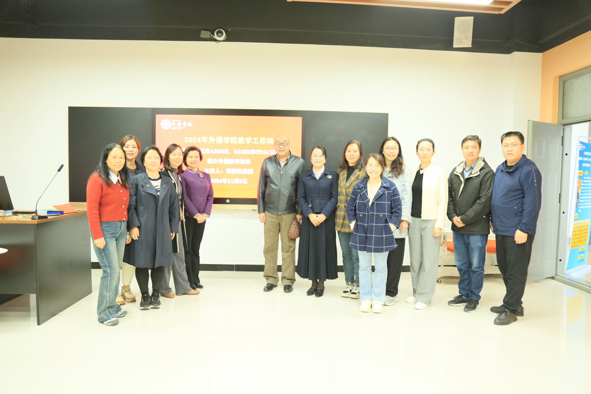 教师进行了为期一天的“创新教学:运用ADDIE、SAMR和TPACK模型提升外语教学效果”工作坊培训活动,活动由院长黄辉辉教授主持。