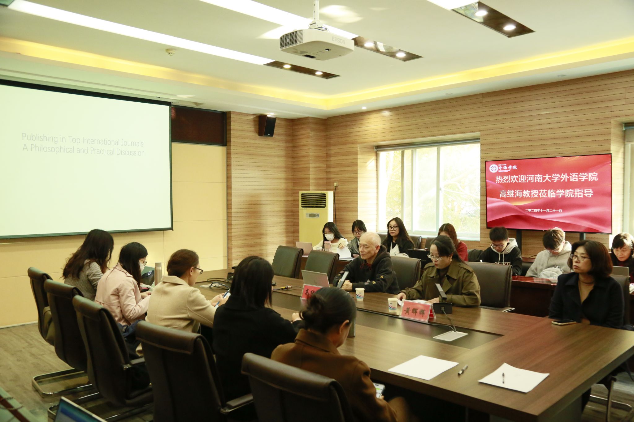 师生带来了一场关于“如何在高端国际英文期刊上发表学术论文”高水平的学术讲座。学院班子成员、硕士生导师、骨干教师和硕士研究生参加了此次学术活动。会议由性巴克