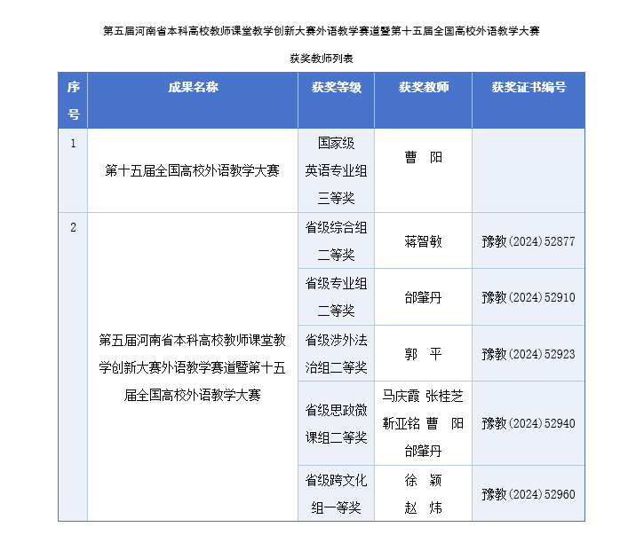 教师扎实的专业素养与教学改革的创新成果。另外,徐颖、赵炜老师获跨文化组省级一等奖,邰肇丹、蒋智敏和郭平老师分获英语专业组、综合组及涉外法治组二等奖,马庆霞老师携成员荣获思政微课优秀团队奖二等奖,实现了所有赛道全获奖。此次获奖不仅是学院老师个人努力的结果,更是性巴克