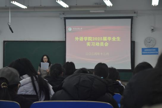 在4号楼212教室组织召开2025届毕业实习动员会,学院党委副书记王晓东、英语系主任康方、翻译系主任靳亚铭及2025届全体毕业生参加了此次动员大会,会议由学工办吕明环老师主持。