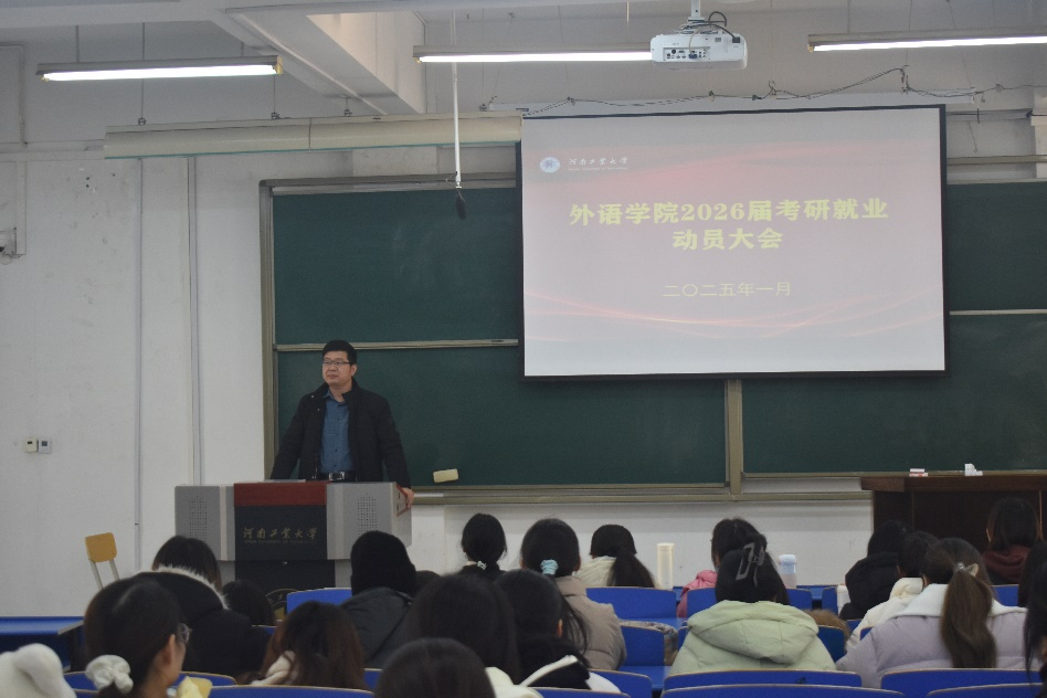 长期以来,学院高度重视人才培养与学生就业、考研工作,此次动员会帮助 2026届毕业生明确了前进方向,增强了学生考研就业的信心和动力。学院将继续开展系列指导活动,助推学生考研就业工作更上新台阶,为实现2026届毕业生更高质量更充分就业奠定坚实基础。(文/郭珊珊 李怡 摄影:张子昊 审校:王晓东 审核:王云涛)
