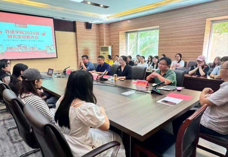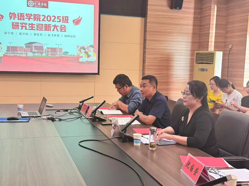 的基本情况,包括学科设置、师资力量与发展平台。她指出,研究生教育与本科教育存在本质区别:本科阶段重在掌握“是什么”和“为什么”,而研究生阶段则应实现从“被动接受”到“主动探索”的转变。她还进一步阐释了新时代外语学科硕士研究生所肩负的三重使命:文化使命、学术使命、时代使命。她强调,学术创新是研究生教育的灵魂,应立足扎实基础,实现从知识传播、生产到创新的全面跨越。针对不同类型的研究生,她指出学术型硕士应侧重理论深度与广度,翻译专业硕士则应突出实践应用与社会价值。最后,她鼓励同学们积极实现“三个转变”——从学习到研究、从接受到创造、从单一学科到跨学科视野的跨越,珍惜时光、扎根传统、回应时代,在创新之路上收获成长与突破。