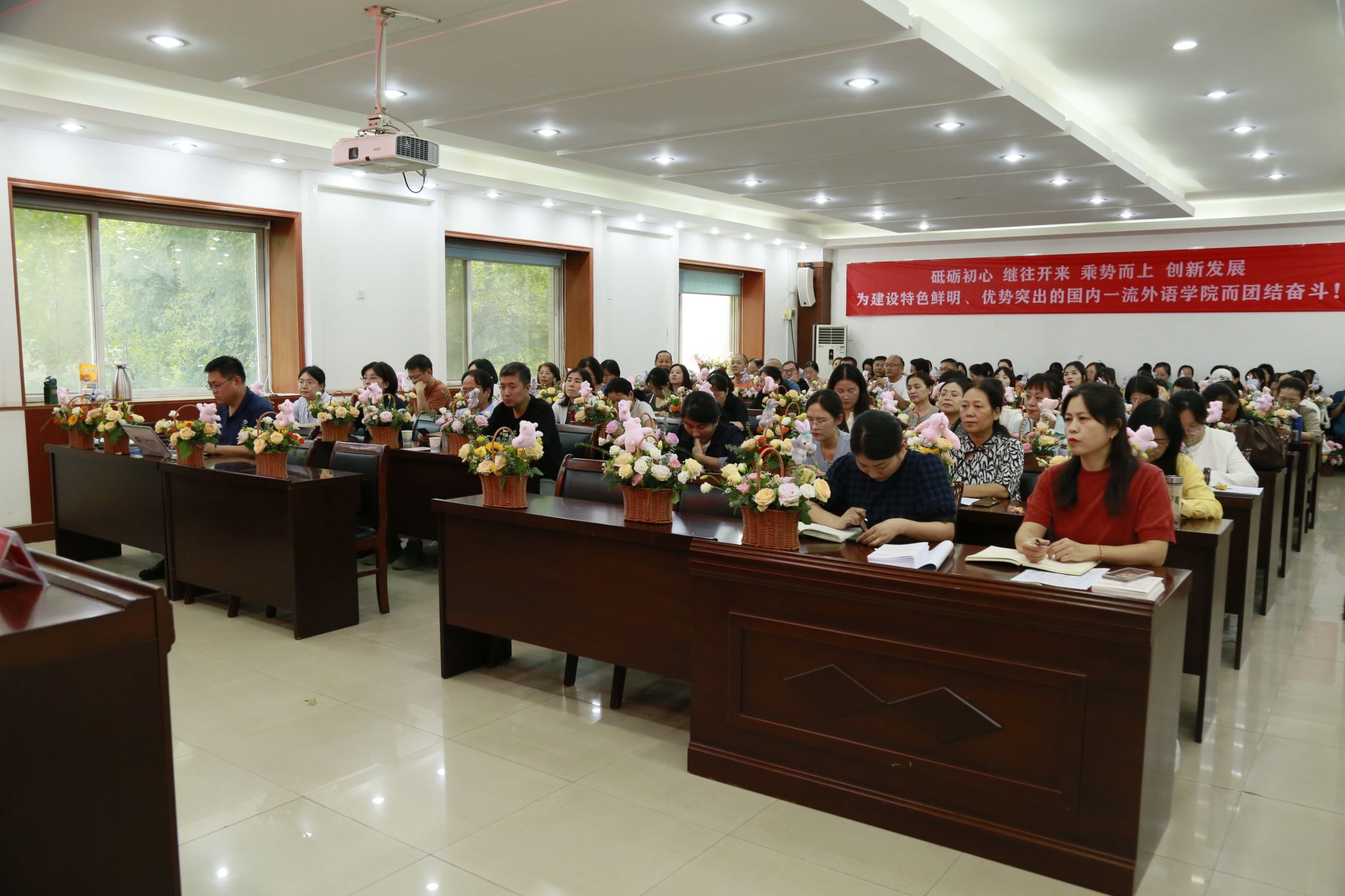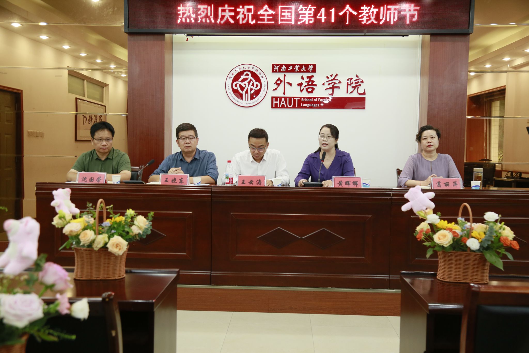 在5225会议室召开秋季学期教职工大会,同步开展全国第41个教师节庆祝活动、上半年工作复盘及新学期工作部署。学院领导班子与全体教职工参会,会议由院长黄辉辉主持。