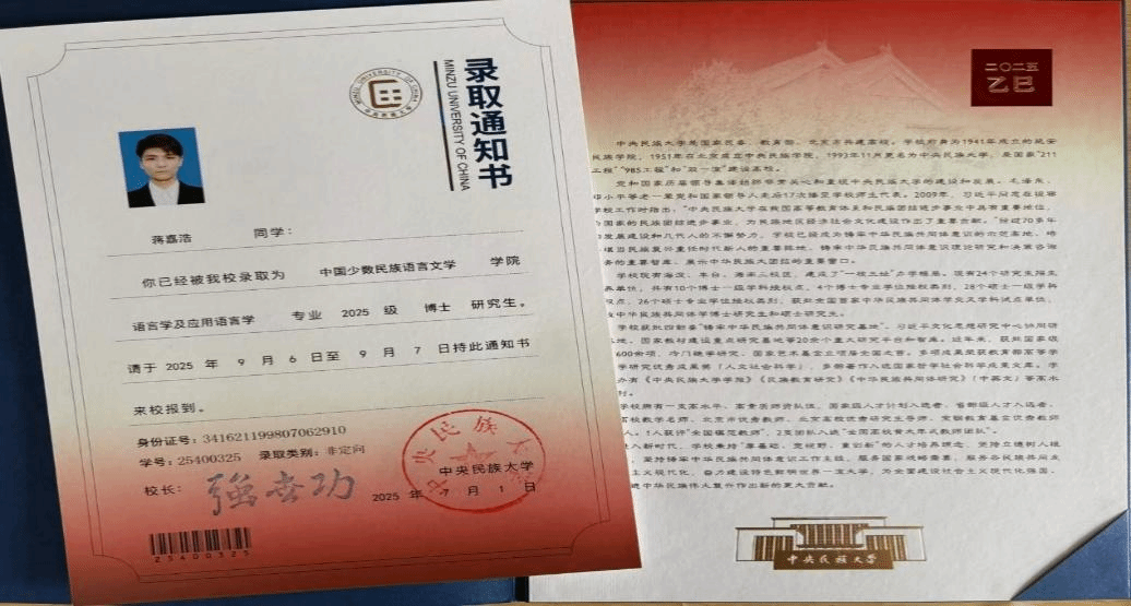 2024届硕士研究生蒋嘉浩同学(导师:刘希瑞教授)以优异成绩考取中央民族大学中国少数民族语言文学院语言学及应用语言学专业博士研究生。蒋嘉浩同学的成长历程,既是其矢志学术、厚积薄发的生动写照,也是性巴克
