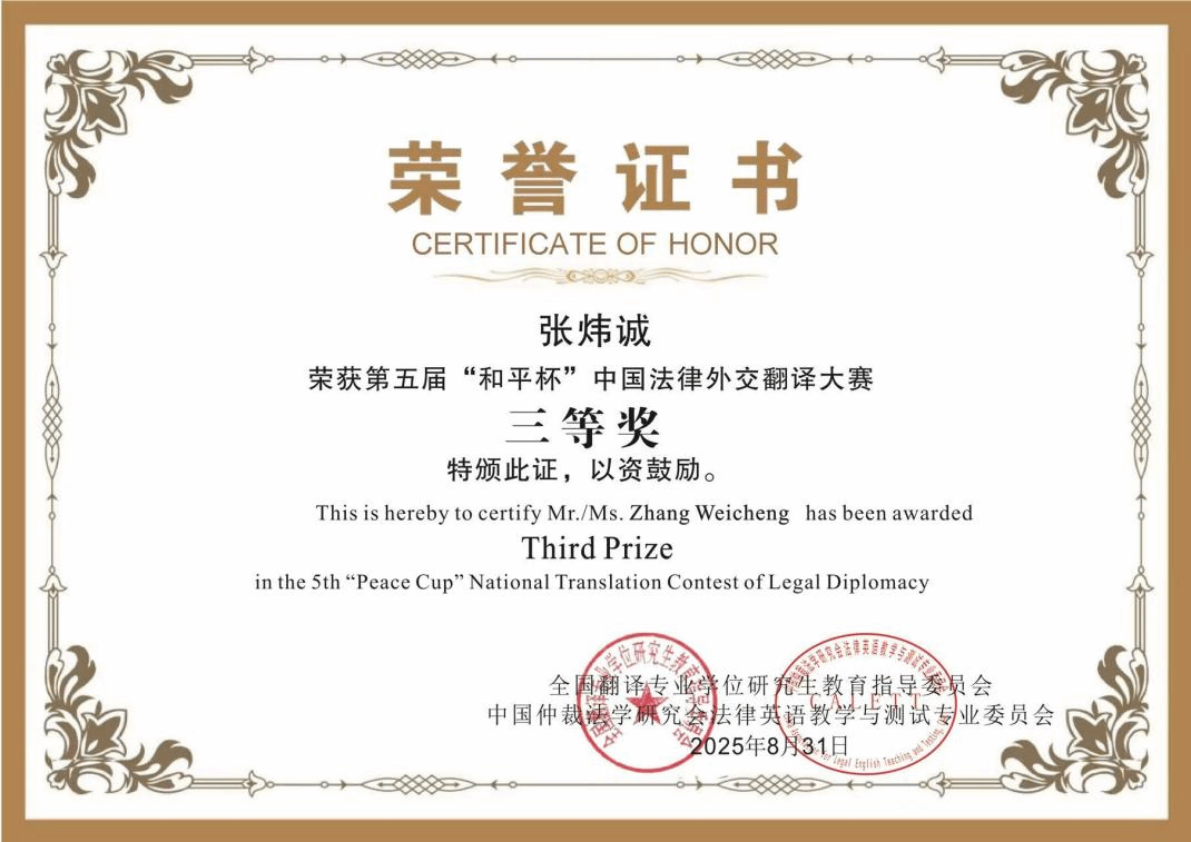 教师杜巧阁指导下,凭借扎实的英语功底与深厚的法律翻译素养,在大赛中荣获三等奖,展现性巴克