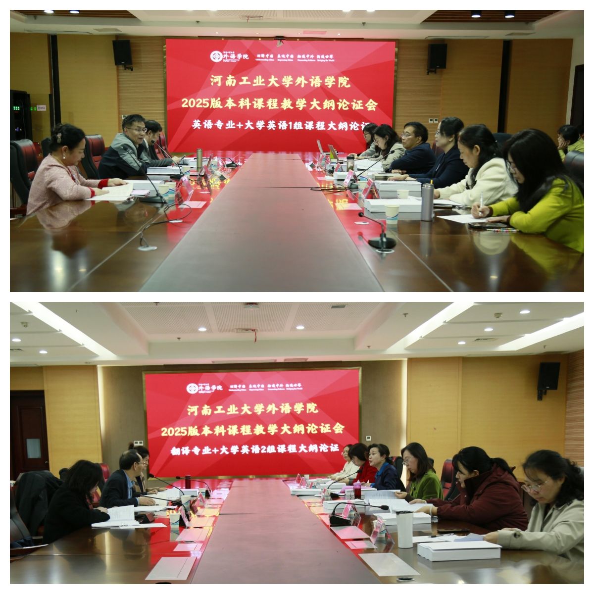 汇报结束后,会议进入核心论证阶段。为提高论证效率与针对性,专家与参会教师分为两组同步开展研讨:第一组聚焦“英语专业+大学英语(1组)”课程教学大纲,第二组围绕“翻译专业+大学英语(2组)”课程教学大纲展开论证。两组专家结合自身丰富的教学与科研经验,从课程体系的科学性、系统性、可行性及与人才培养目标的契合度等方面进行了深入审视,既充分肯定了大纲修订的亮点与创新,也针对信息化教学手段、教学资源建设、跨学科融合、考核评价体系完善等方面提出了富有建设性的意见与建议。参会教师认真聆听、详细记录,并积极与专家交流探讨。