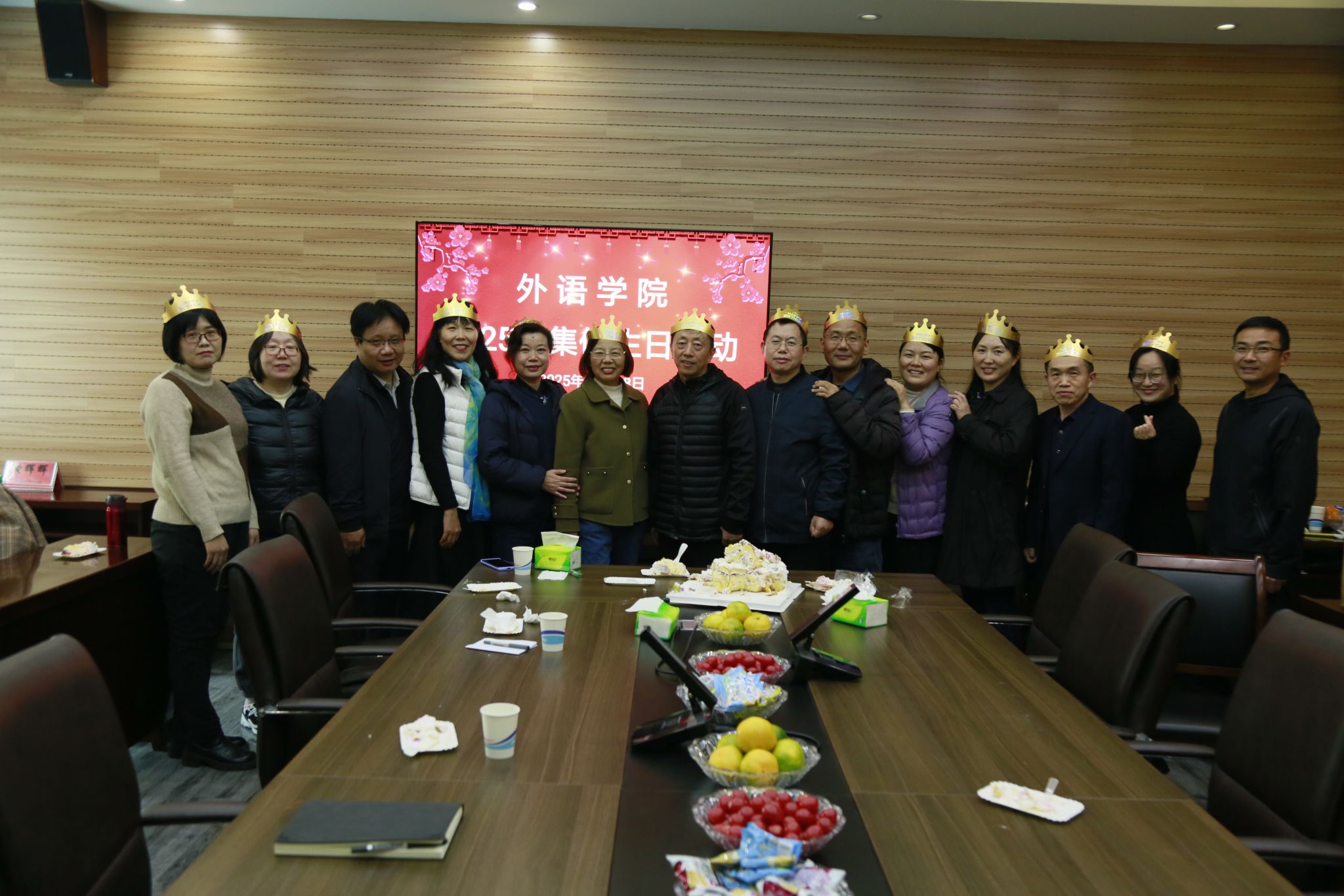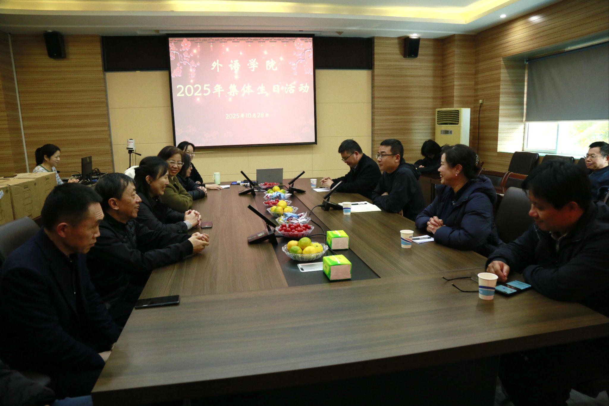 在5231会议室举办2025年度集体生日活动。学院领导班子、今年逢整十生日和55岁生日的教师及各系部教师代表齐聚一堂,共庆温馨时刻,共享生日喜悦。活动由学院党委副书记、工会主席王晓东主持。
