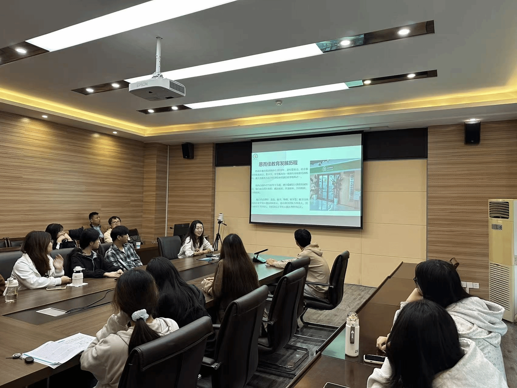 招聘会上,郑州恩而佳工作人员系统介绍了教育培训行业发展前景、公司性巴克与业务内容,并对本次招聘的岗位职责、任职要求、培训体系及晋升通道进行了详细说明,同时重点解读了薪酬福利待遇等毕业生关切的内容。