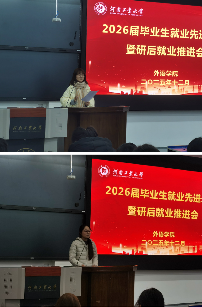 王云涛作总结讲话,他指出,当前正值求职关键期,全体毕业生应彻底摒弃“等靠要”思想,树立“先就业、后择业”的务实观念,并向同学们提出三点要求:一要转变观念,践行“先就业、再择业”,主动把握各类机会;二要明确方向,立足外语优势拓展复合能力,实现精准定位;三要夯实根基,持续提升专业素养与综合竞争力。学院将持续整合资源,为毕业生就业提供全方位支持与保障,助力学子们顺利开启职业生涯,在服务国家发展中实现人生价值。