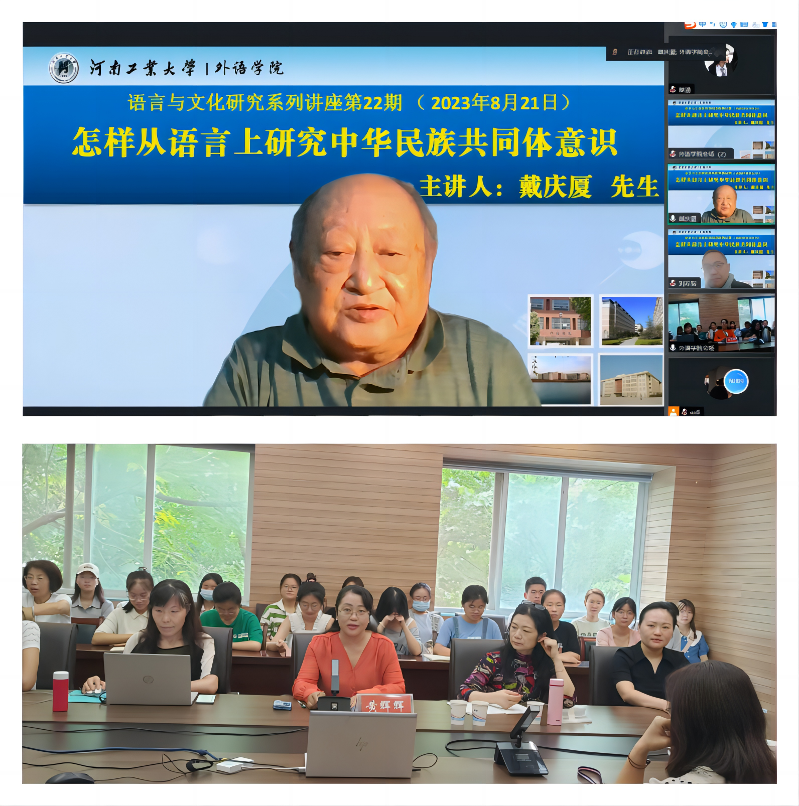 师生做题为“怎样从语言上研究中华民族共同体意识”的学术讲座。本次讲座采用线上线下相结合的方式进行。性巴克