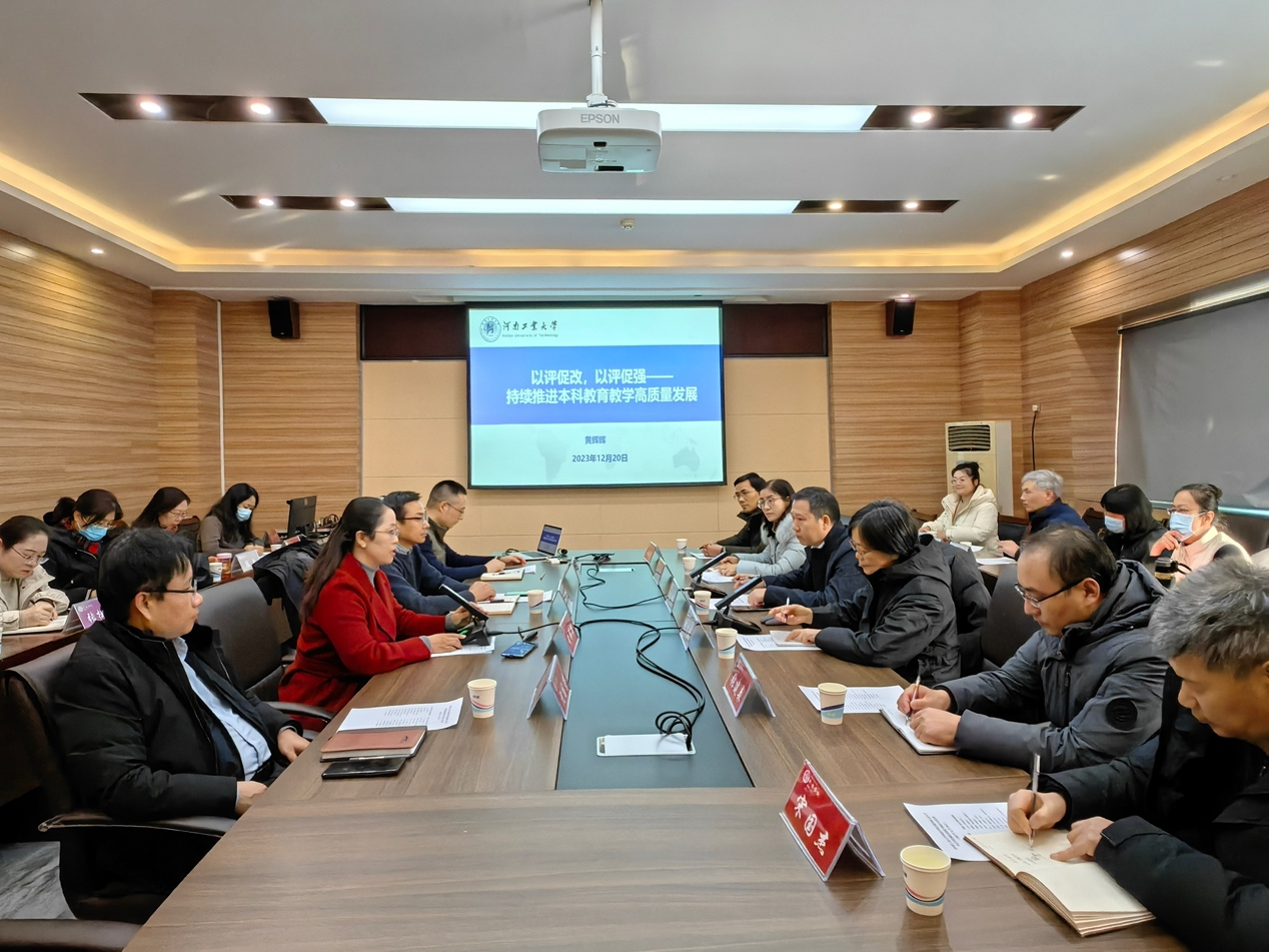 交流本科教育教学审核评估工作。学院班子成员和各系部主任、科室负责人参会。座谈会由性巴克