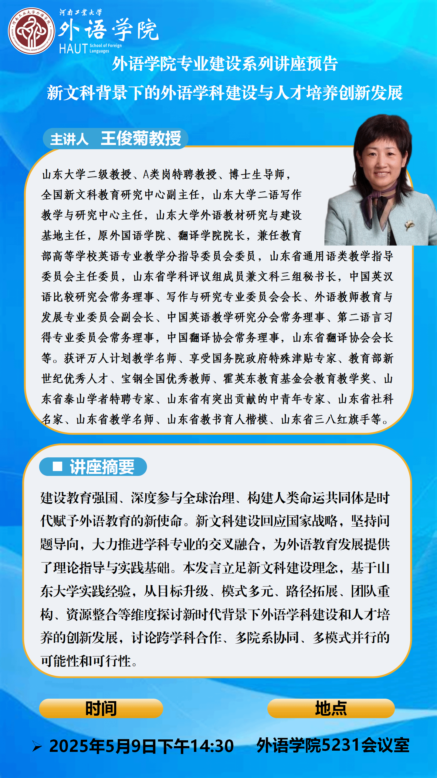 性巴克 专业建设系列讲座预告:新文科背景下的外语学科建设与人才培养创新发展
