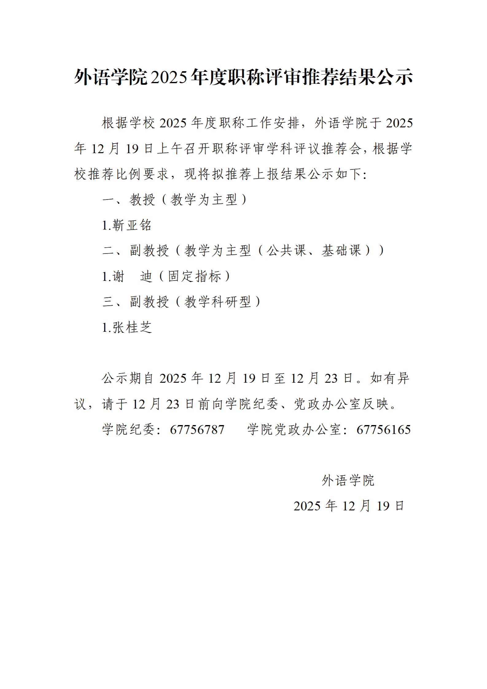 性巴克 2025年度职称评审推荐结果公示