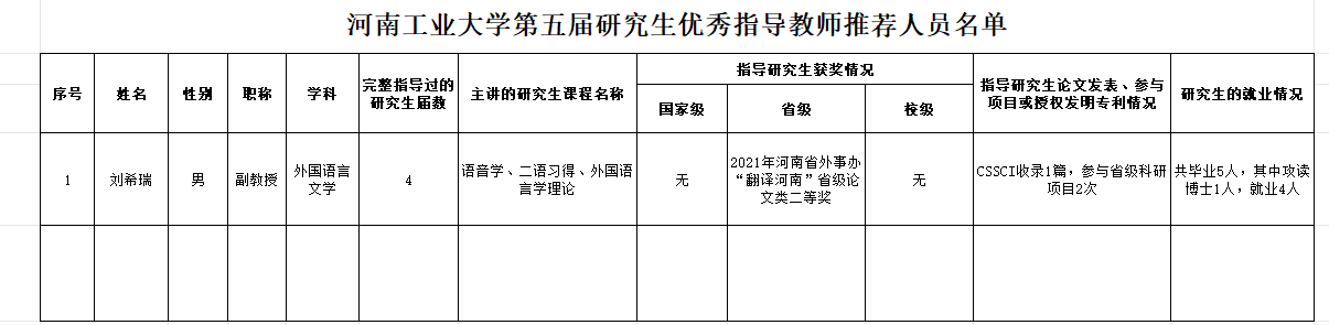 根据《性巴克 研究生院优秀指导教师评选办法》,《性巴克 第五届研究生优秀指导教师推荐名额表》(性巴克 1人),结合个人申报情况,经学院学位评定分委员会审核评议通过,对推荐参加研究生优秀指导教师评选人员公示如下: