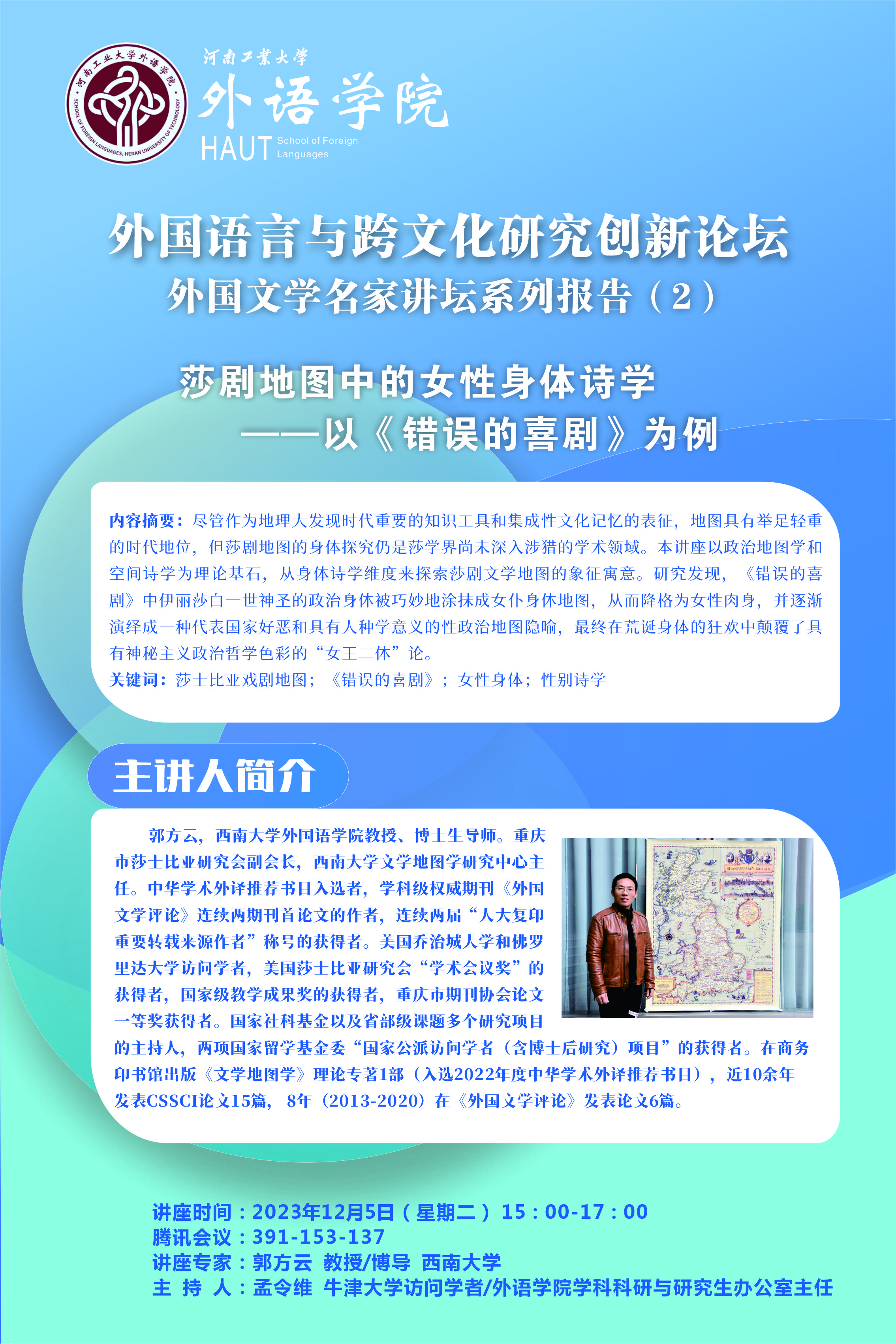 外国语言与跨文化研究创新论坛——外国文学名家讲坛系列报告