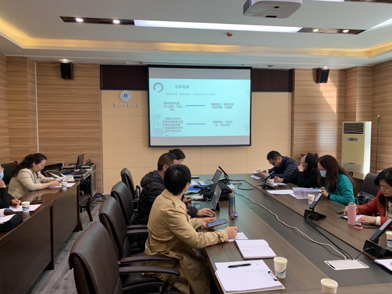 此次参与验收评审的项目涵盖了《大学英语》、《英语演讲艺术》等公共基础课、《综合英语》、《英美诗歌赏析》《语言学导论》等专业核心课程以及学院特色课程《中国武术文化(英)》,体现了学院教师稳步提质量、积极求变化、团队齐努力的工作态度。多模态教学手段、语料库构建、虚拟仿真实验室智慧教学等理论与实践成果的汇报精彩纷呈。