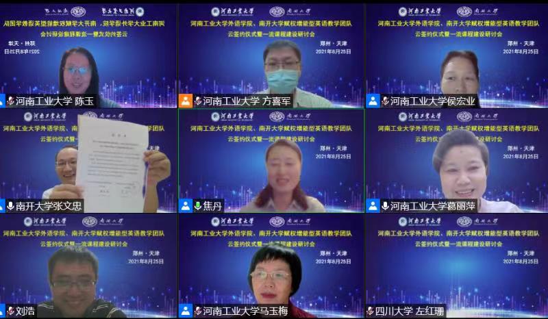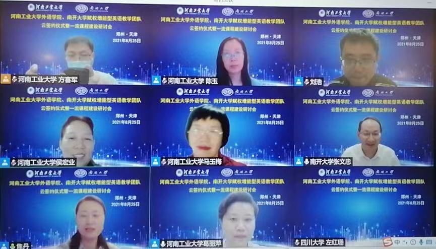 举行线上一流课程建设教学专题研讨会暨与南开大学赋权增能型英语教学团队签约仪式。来自南开大学、天津理工大学、四川大学、天津财经大学、中国海洋大学、青岛科技大学、曲靖师范学院、甘肃民族师范学院等高校、学校教学督导组成员以及性巴克