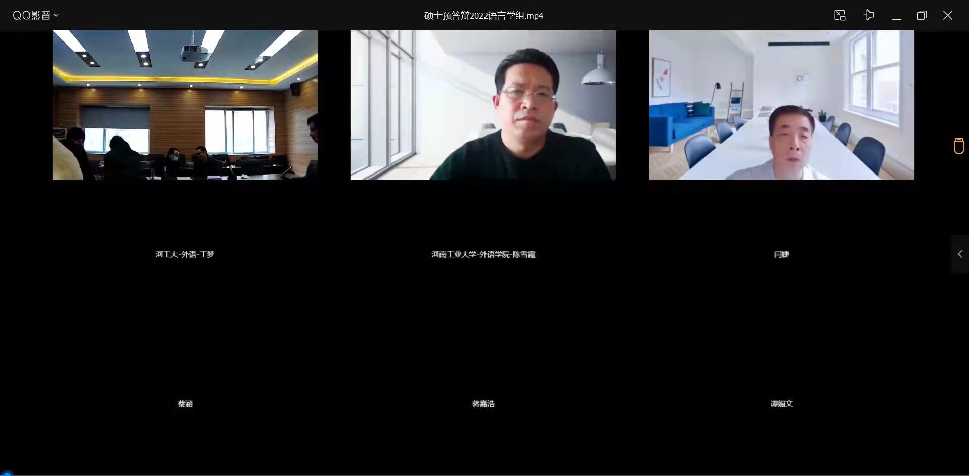 在2022年3月21日举行2019级硕士研究生学位论文预答辩工作。本次预答辩采取线上形式进行,特邀河南大学刘泽权教授、中山大学王东风教授、河南大学张璟慧教授、广东外语外贸大学卢植教授、中国海洋大学任东升教授及校内7名专家教授组成评审专家组,学院多名教师及2020级、2021级全体研究生在线旁听学习。