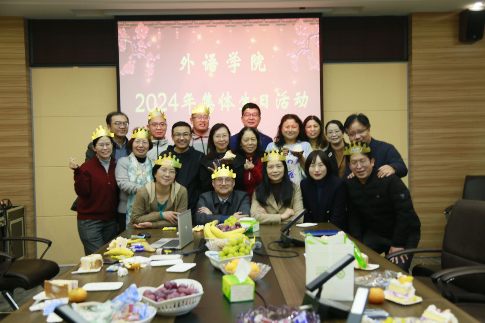 在全场的祝福声中,学院领导为每位寿星送上了生日礼品并合影留念。