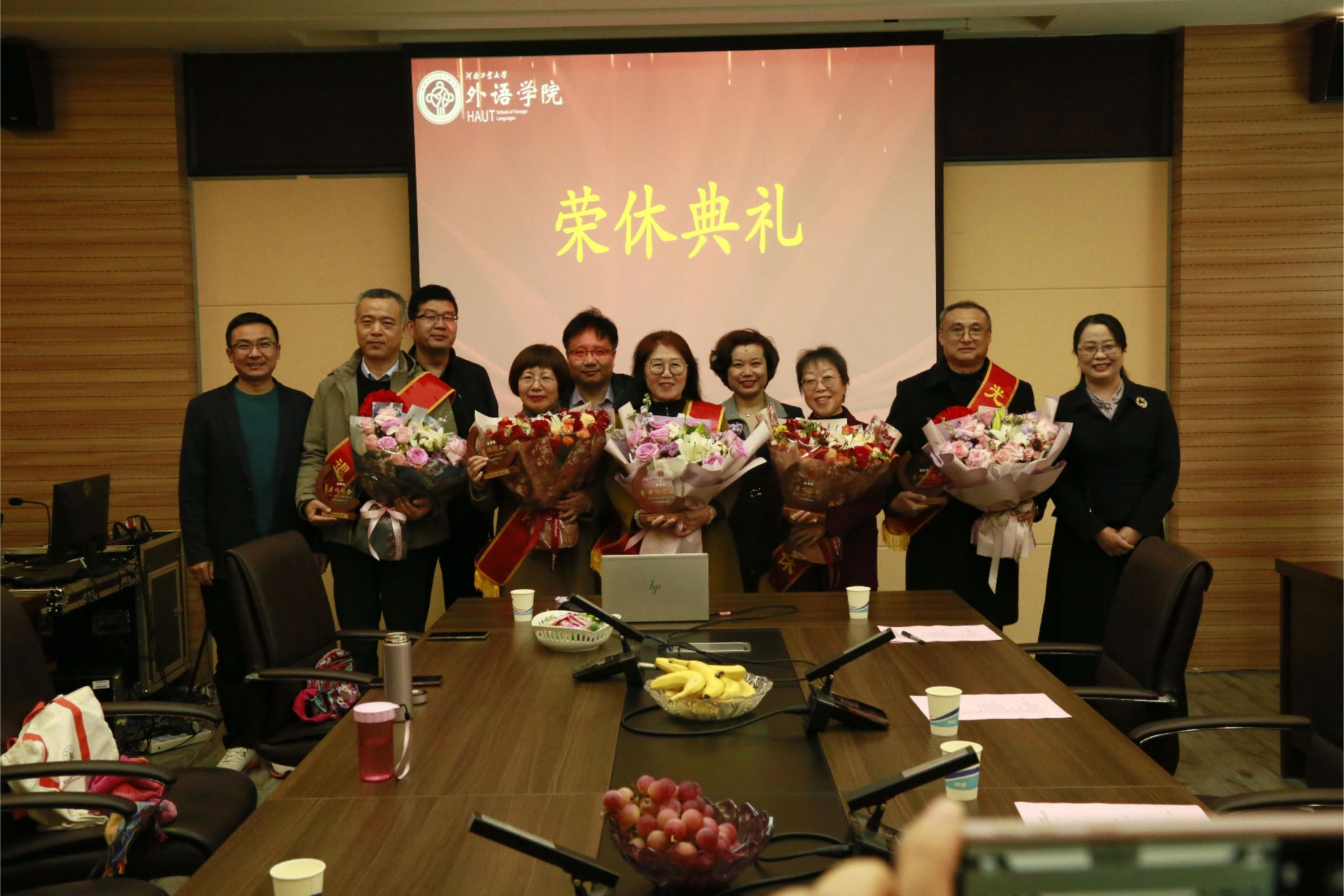 院长黄辉辉代表学院班子、全体教师对荣休教师为学院发展及教育教学工作所做出的贡献表示最崇高的敬意和最真挚的感谢。她表示五位荣休教师在学院创始、搬迁拓荒、专业发展、学科建设及学院转型等各个阶段均作出了突出贡献,在学院发展史上留下了浓重的一笔,他们的人格魅力、敬业精神及豁达的心态为学院留下了一笔沉甸甸的精神财富,为学院文化传承作出了重大贡献。她祝福他们退休后生活更加充实、美满、幸福,同时也希望大家退岗不褪色,继续关注、帮助和支持学院的发展,为学院的发展建言献策。