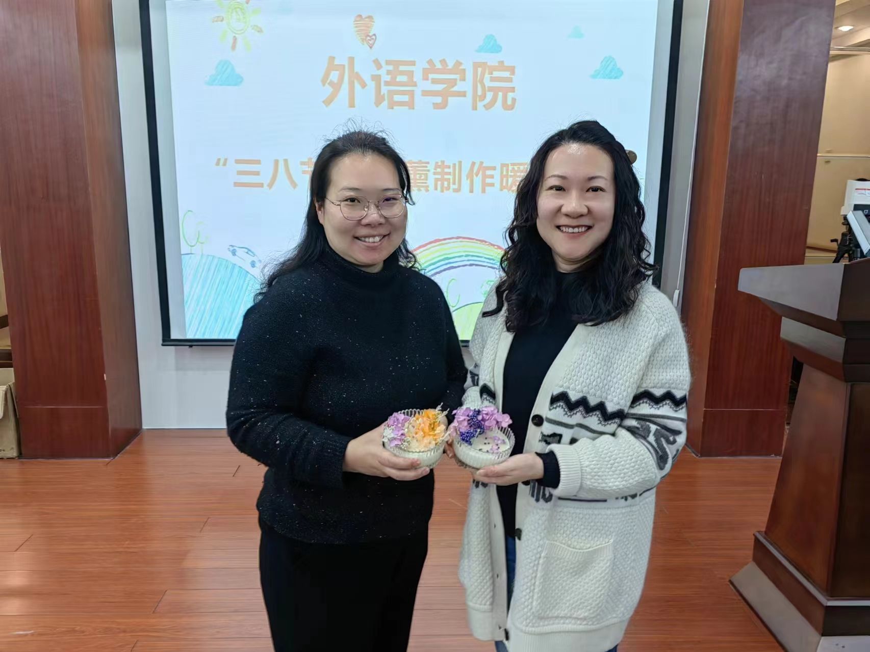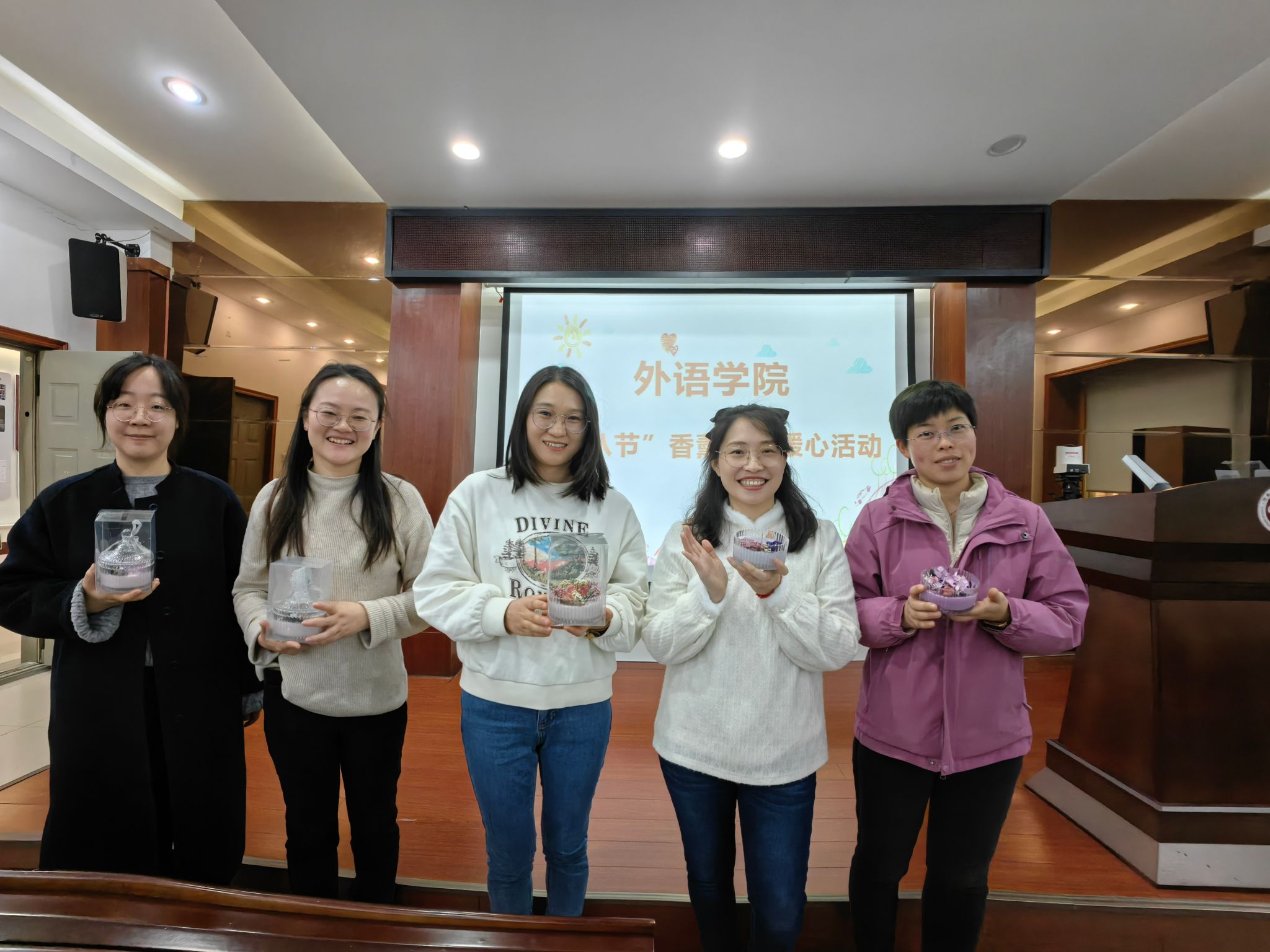 为庆祝“三八”国际劳动妇女节,丰富广大职工的精神文化生活,3月5日下午,性巴克 在5225会议室举行庆“三八”手工香薰蜡烛制作活动,学院教职工体验了一堂香薰蜡烛趣味手工制作课。