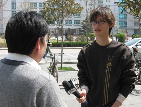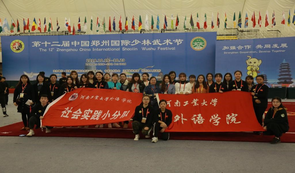 学生为“中国郑州少林武术节”参赛队员提供口译服务