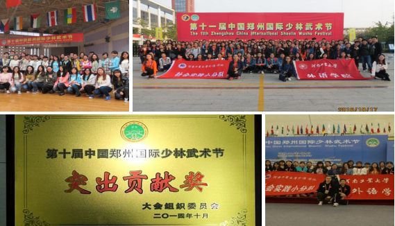 学院积极搭建实践教学平台,与商务部国际商务官员研修学院、郑州市体育局、商务部援外培训项目合作,组织学生参加国家商务部援外培训项目、中国郑州国际少林武术节、中国(河南)国际投资贸易洽谈会志愿服务、中国郑开国际马拉松的翻译志愿服务活动,引领学生立足中原面向世界。学院是“中国郑州国际少林武术节”翻译志愿者服务项目唯一的河南省合作高校,被郑州市体育局授予“突出贡献奖”。学院与阿里巴巴(中国)网络技术有限公司、河南同舟棉业有限公司等开展校企合作项目,组织学生服务行业与地方经济建设。学生在社会服务中的表现得到组织方的一致好评。