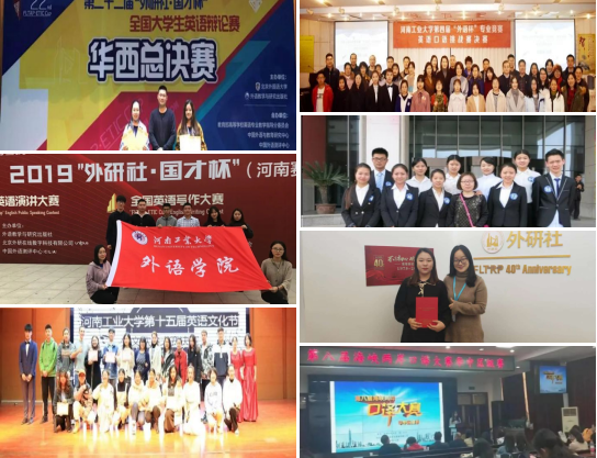 学生在各类专业竞赛中表现优异,学生获第二十二届“外研社·国才杯”全国大学生英语辩论赛华西赛区三等奖、2019“外研社·国才杯”全国英语阅读大赛总决赛全国二等奖、第八届“海峡两岸口译大赛”华中大区赛三等奖、“CCTV杯全国英语演讲比赛”河南赛区一等奖、连续两年荣获“外研社杯全国写作大赛”河南赛区特等奖及全国决赛三等奖、第四届全国口译大赛河南赛区三等奖和优秀奖、“二十一世纪联想杯全国英语演讲比赛”二等奖、第三届“新东方•托业杯”英语口语大赛华中区二等奖、赛扶世界杯中国站创新公益大赛全国总决赛三等奖、“外教社”杯全国跨文化能力大赛三等奖等。