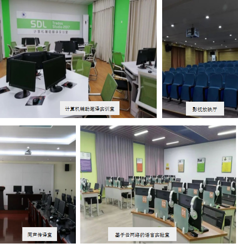 学院教学硬件设施齐全,教学软件及图书资源丰富。建有同声传译室、计算机辅助翻译实训室、录播教室、影视放映厅、虚拟情景互动口语教学实训室(在建中)、英语广播电台和11间基于云网络的小班教学语言实验室及13间基于本地网络的语言实验室等,座位数总计1600余座。主要使用蓝鸽与极域等语言实验室教学系统、讯飞FIF与大娱号等人机互动或情景互动口语教学实训系统、Trados与上海一者等机辅翻译系统、iTEST、U校园与WeLearn等测试与训练系统和以武术、粮油为主的全学科英汉双语语料库等,并在建设智慧外语教学基础平台,统一部署与管理各类软件与教学平台。建有《高级英语》、《基础英语》和《翻译理论与实践》等课程网站,全面服务于教学与教研工作。学院资料室现有藏书13000余册,其中中文图书9000余册,外文图书(英、日、俄)4000余册,期刊72余种,工具书300余册,有声资料1200余盒(张)。