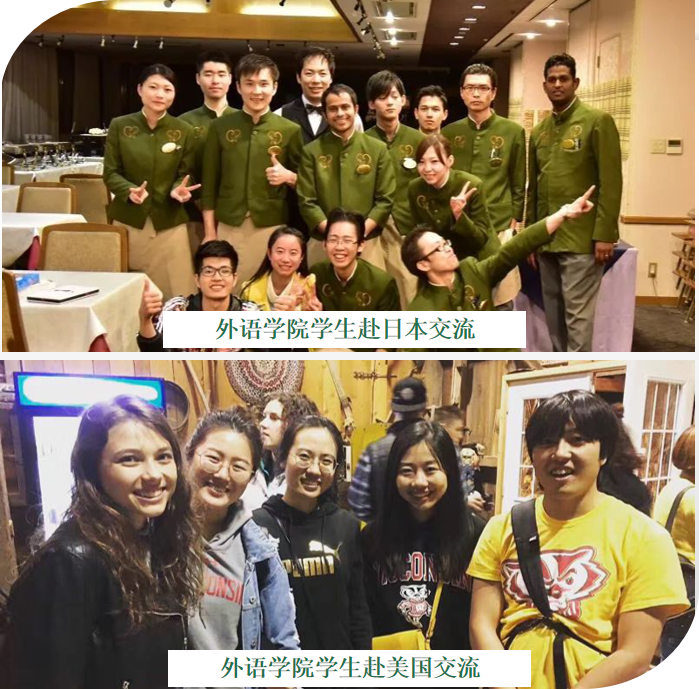 学院鼓励学生出国学习和交流,开拓国际视野。现有韩国朝鲜大学2+2项目以及学校层面其他国际交流项目,正积极推进与新西兰奥克兰大学、西班牙阿尔卡拉大学、西班牙康普斯顿大学、英国朴茨茅斯大学在校生对外交流项目。学生分别参加台湾中国文化大学、美国中央阿肯色大学、韩国朝鲜大学等的交换生项目,国家汉办汉语教师志愿者项目等。